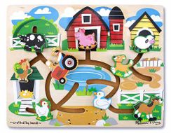 This innovative wooden puzzle includes nine adorable farm-themed pieces that slide around a farmyard on slotted tracks. Uniquely designed sliding pieces move freely around the puzzle, but can't be removed or lost. This great activity encourages hand-eye coordination and fine motor skills.